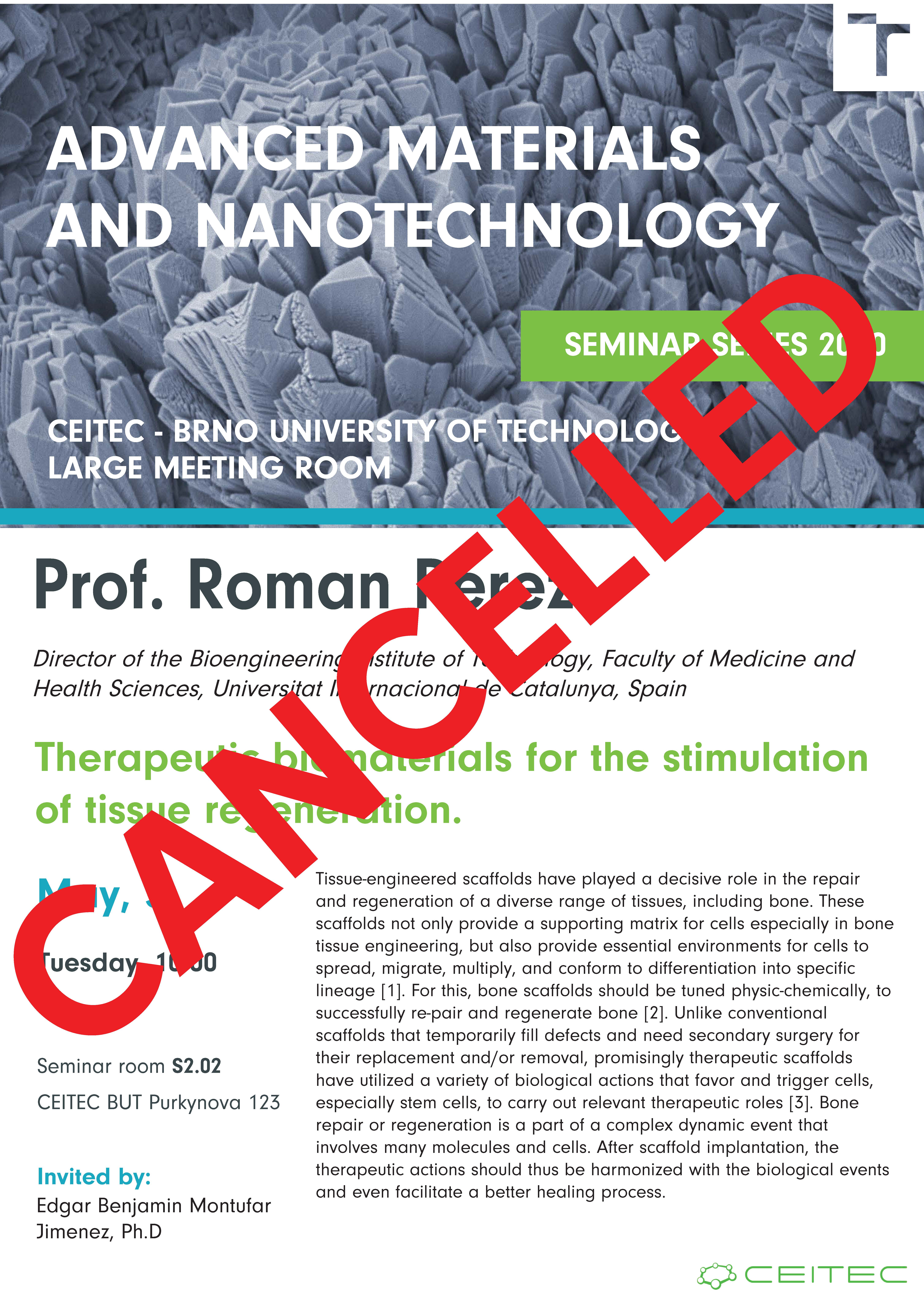 CANCELLED: AMN SEMINAR SERIES: Therapeutic biomaterials for the stimulation of tissue regeneration.