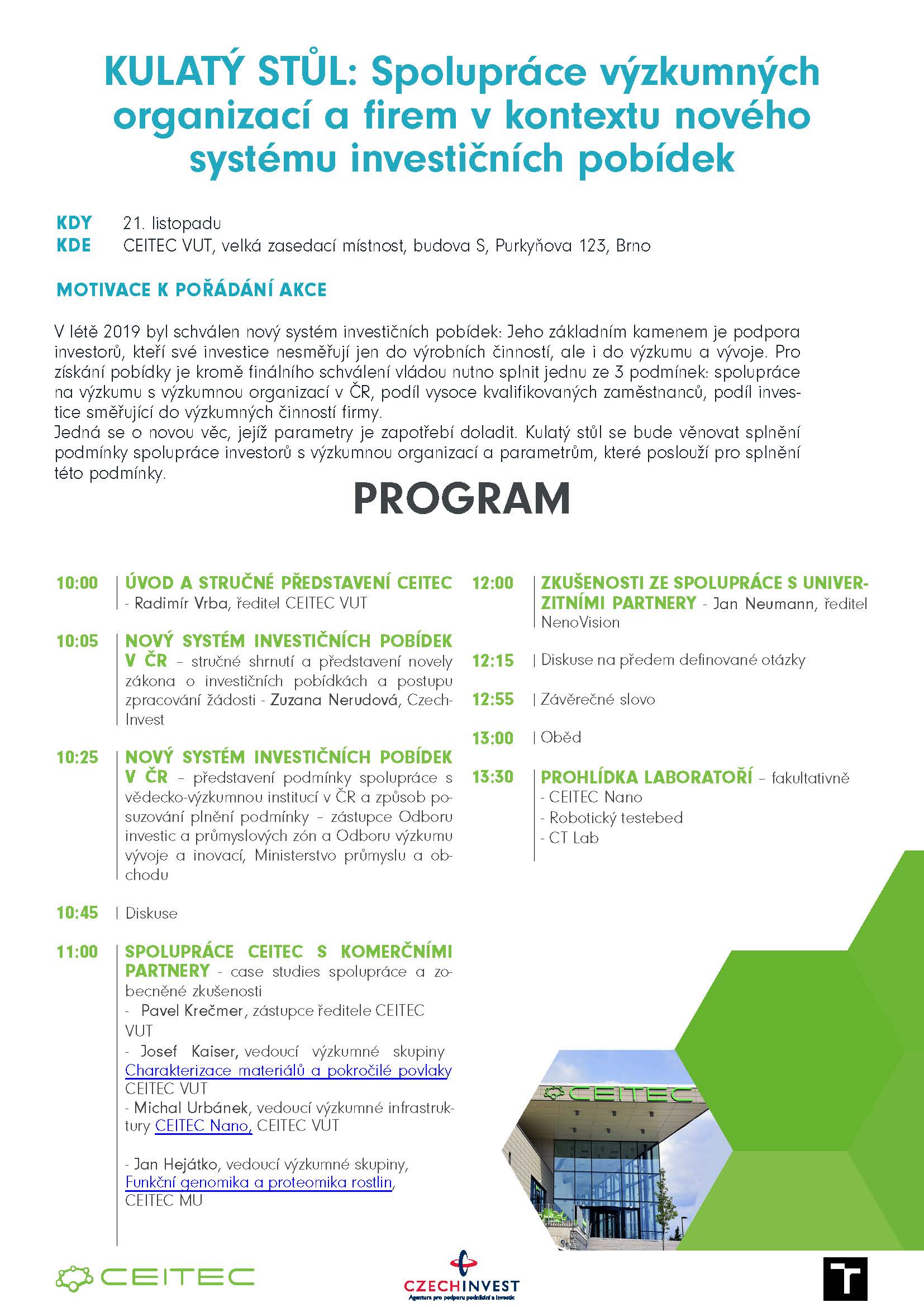 Kulatý stůl: Spolupráce výzkumných organizací a firem v kontextu nového systému investičních pobídek