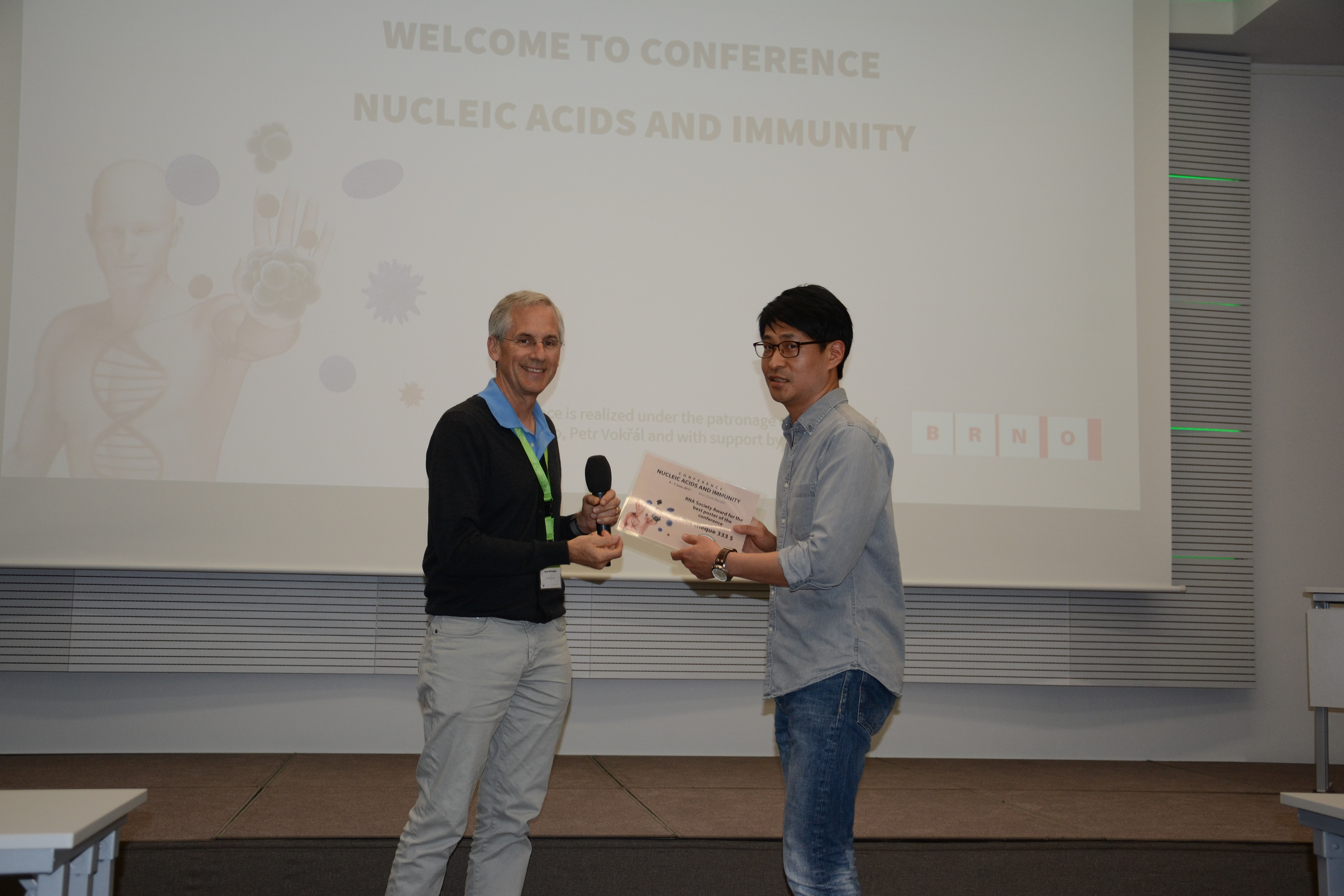 The organizers of the second conference on Nucleic Acids and Immunity; Mary O´Connell and Liam Keegan are very happy with the success of the conference. The conference hosted over one hundred participants with approximately twenty leading researchers from the field of RNA research and immunity. The highlight of the conference was the keynote talk by Shizuo Akira. He is the most cited living author in the field of biology. He actively participated in all three days of the conference and many of the attendees were delighted to have the opportunity to interact with such an imminent figure in science. The overall atmosphere was very positive, friendly and full of new ideas.