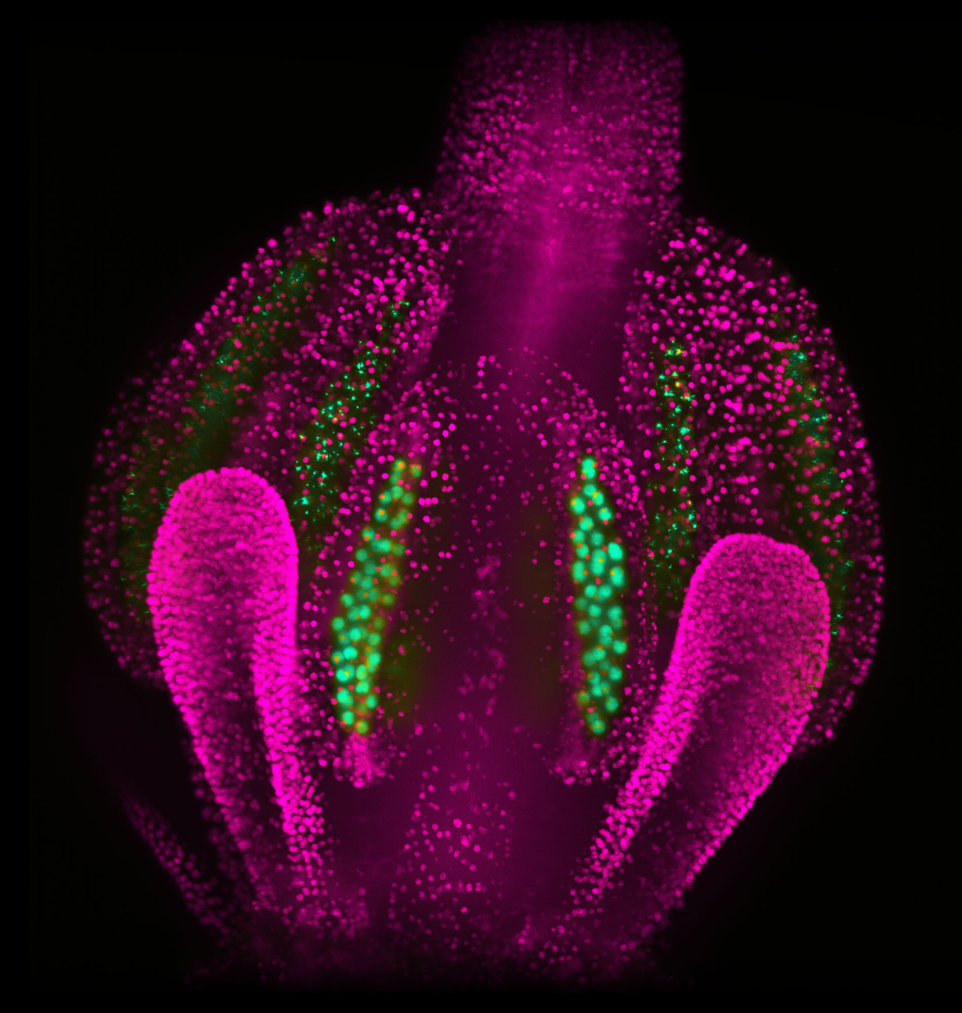 All plant cells ultimately derive from a crown of hundreds of cells sitting at the head of the plant’s main stalk — the apical meristem. Botanists have known for decades that slowly dividing stem cells in the center drive growth by producing daughter cells, which replicate faster on the periphery, pushing the meristem higher and eventually becoming leaves, branches and flowers. But it was unclear exactly how plants choose which cells should start these organs.